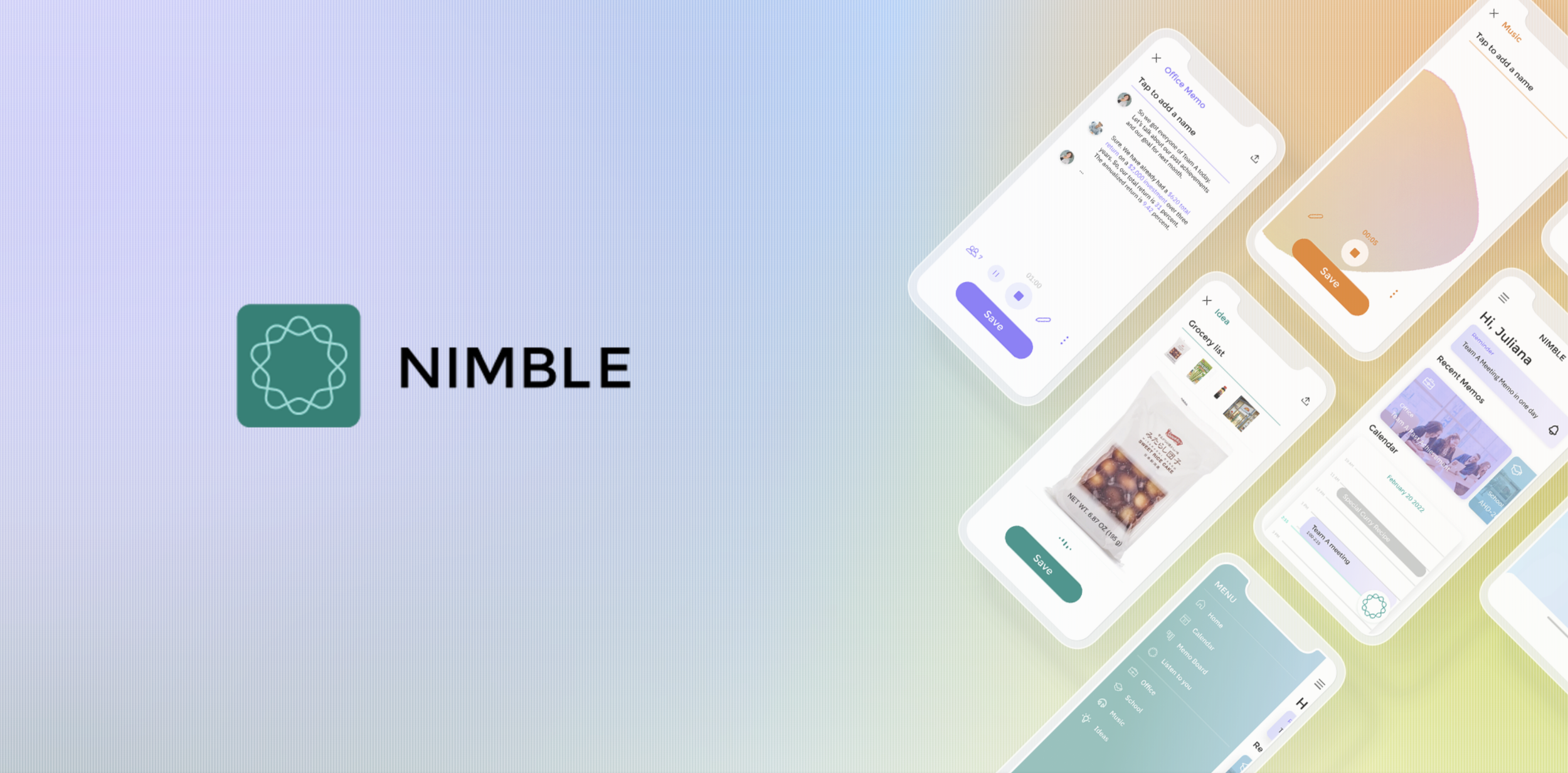 Nimble is a smart voice memo that helps everyone record, organize and process all kinds of information